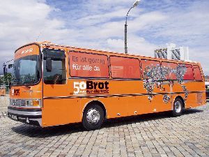 Das „Brotmobil“ ist ein ehemaliger Reisebus, der zu einem Info- und Ausstellungsbus umgebaut wurde. Bereits die auffällige Außengestaltung macht auf die Anliegen von „Brot für die Welt“ aufmerksam. Der Innenraum bietet vielfältige Möglichkeiten sich über entwicklungspolitische Themen zu informieren. Eine Sitzecke lädt zum Verweilen oder zu Gesprächen ein. Bei gutem Wetter bieten die Mitarbeiter von „Brot für die Welt“ Kinder und Jugendlichen außerdem viele Spielaktionen an.