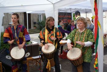 Darüber hinaus erlebten die Besucher ein abwechslungsreiches Rahmenprogramm für die ganze Familie. Die Trommelgruppe „Lolonyo“ sorgte für mitreißende Rhythmen. Bei einem Schätzspiel galt es, die Zahl der Kaffeebohnen in einem Glas zu erfassen. Die Kinder ließen Luftballons steigen oder bemalten Okarinas. Eine Caféteria mit Brötchen, Salaten oder Kuchen aus fair gehandelten Zutaten rundete das Programm ab.