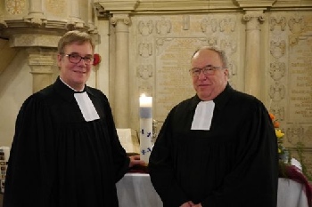 Dort brannte die von Pfarrer Brehme kunstvoll verzierte Kerze auf dem festlichen Altar, während Landessuperintendent Dietmar Arends über die Friedensvision von Jesaja predigte mit dem berühmten Satz „Schwerter zu Pflugscharen“ (Jes. 2,4) Arends erinnerte an die über 60 Millionen Menschen, die weltweit auf der Flucht sind. Jesaja erzähle Gottes Traum, in dem Menschen lernen nicht mehr Krieg zu führen, sondern die begrenzten Ressourcen friedlich nutzen. Über viele Wochen habe die Wanderfriedenskerze Menschen motiviert, sich für den Frieden zu engagieren. Der Landessuperintendent erinnerte auch an das 30-jährige Jubiläum des „Bekenntnisses von Belhar“, das in der südafrikanischen Partnerkirche unter dem Eindruck des Apartheid-Systems als theologische Mahnung gegen Ausgrenzung und Ungerechtigkeit und für eine gerechtere Welt entworfen wurde. Der Gottesdienst mit Abendmahl wurde musikalisch von Frank Schütte auf der Klausing-Orgel von 1748 untermalt.
