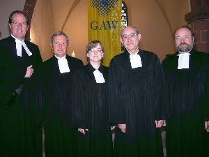 Pfarrerin Möller führte durch die Liturgie des Jubiläumsgottesdienstes, unterstützt von den Vorstandsmitgliedern Kirchenrat Andreas-Christian Tübler und Pfarrer i.R. Herbert Grote sowie Superintendent Ernst-August Pohl. Die Kantorei der Marktkirche Lage unter der Leitung von Volker Stenger bereicherte den Gottesdienst musikalisch. Im Anschluss an den Gottesdienst waren alle Besucher eingeladen, beim Kirchkaffee ins Gespräch zu kommen und sich am Büchertisch über das GAW zu informieren.