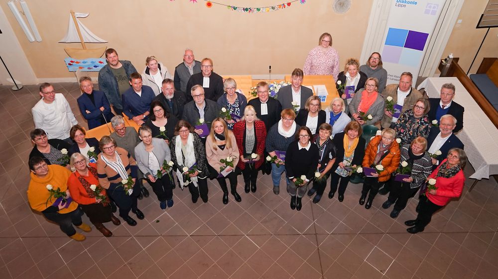 Kreis Lippe/Lemgo. „Sie haben an ganz unterschiedlichen Orten zum Gelingen des Ganzen beigetragen und geholfen, dass Menschen Nächstenliebe begegnet ist“, dankte Landessuperintendent Dietmar Arends rund 40 Jubilaren aus zehn diakonischen Einrichtungen und Kirchengemeinden, die in der evangelisch-reformierten Kirche St. Johann mit dem Kronenkreuz ausgezeichnet wurden.Das Kronenkreuz erhalten Mitarbeitende nach 25 Jahren Dienst in der Diakonie.