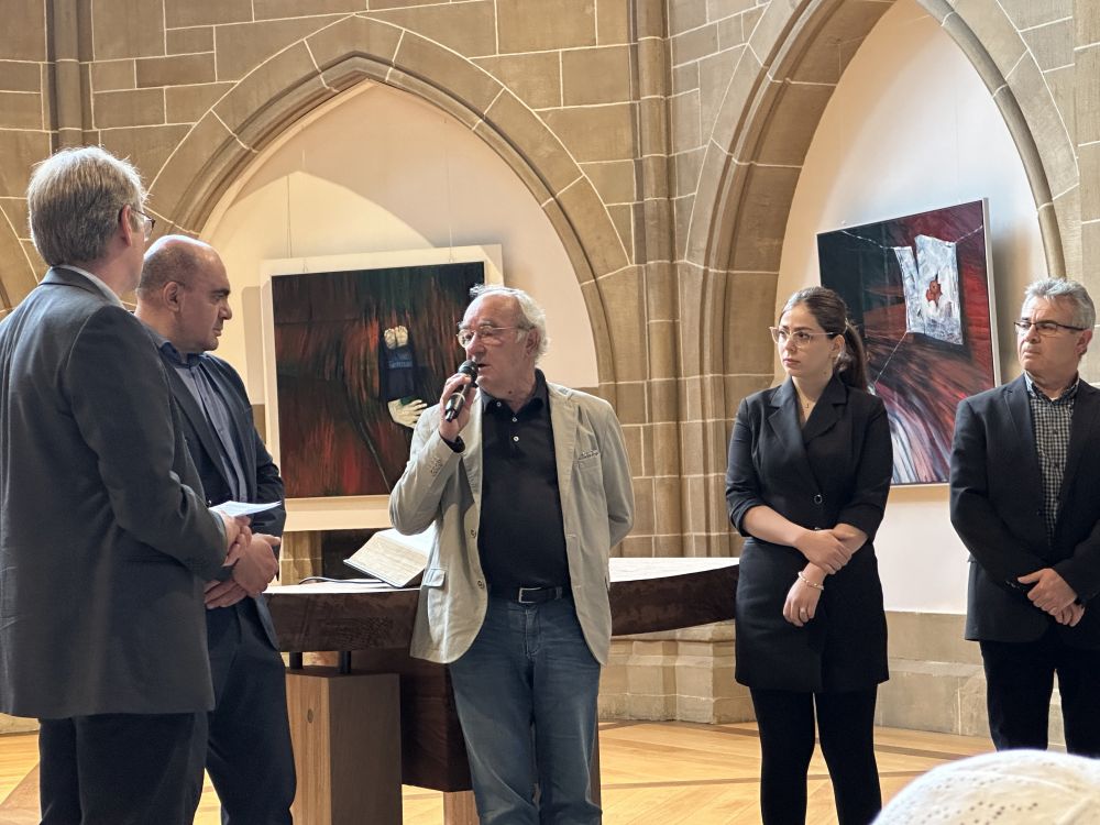 In einem von Dieter Bökemeier, Landespfarrer für Diakonie, Ökumene und Migration, moderierten Gespräch berichteten Matitjahu Kellig von der Jüdischen Gemeinde Herford-Detmold und Nihat Köse über ihre Erfahrungen seit dem Terrorangriff der Hamas und dem darauffolgenden Krieg mit Israel. Antimuslimischer Rassismus und vor allem weltweit erstarkender Antisemitismus sind eine Folge. Matitjahu Kellig erzählte von der Spannung, in der er jeden Tag lebe. „Das Verlangen von Menschen danach, einen Staat plattzumachen, das macht mich betroffen, sehr betroffen.“ Statt eines Gebets bat er darum, einige Minuten aufzustehen und zu schweigen.