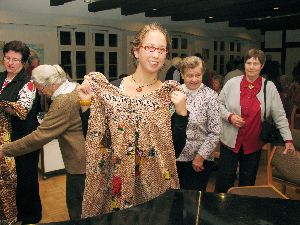 In der Pause nutzten die Besucherinnen des Länderinformationsabends die Gelegenheit, die farbenfrohen afrikanischen Stoffe zu betrachten und zu befühlen, die teilweise zu bestimmten Anlässen, wie den Weltgebetstag, entworfen werden. Christa Goeken vom Detmolder Eine-Welt-Laden Alavanyo informierte die Frauen über Rhythmusinstrumente aus Kamerun, die in Kürze im Laden eintreffen werden.