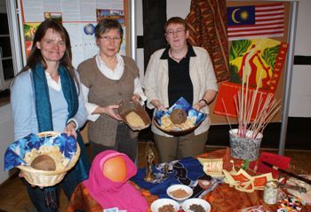 In den Pausen bot sich den Besucherinnen des Länderinformationsabends die Gelegenheit, am Stand des Eine-Welt-Ladens Alavanyo verschiedene Produkte aus Malaysia kennen zu lernen. Zudem übten sie einige Lieder zum Weltgebetstag ein.