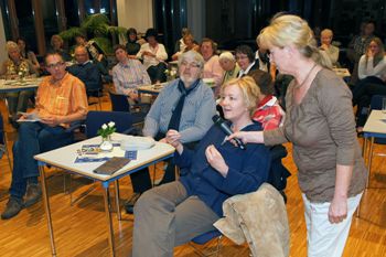 Bildungsreferentin Monika Korbach (Lippische Landeskirche) und Pfarrer Dieter Bökemeier (ev.-ref. Kirchengemeinde Detmold-Ost) moderierten das Gespräch am Mittwoch, 9. Mai, mit drei Podiumsgästen im Gemeindehaus am Markt.