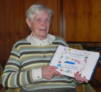 Die Arbeit im Kindergottesdienst ist nun vorbei, doch der Kirchengemeinde bleibt Ortrud Krause tief verbunden – so wie es immer schon war. Seit der Zeit, als sie nach dem Krieg als kleines Mädchen, gehbehindert durch Kinderlähmung, als Flüchtling mit ihrer Mutter und dem jüngeren Bruder nach Barntrup kam: „Die Kirchengemeinde hat mich aufgenommen und akzeptiert. Das hat mir sehr geholfen und Selbstbewusstsein gegeben.“ Der damalige Pfarrer Otto Voget habe mit dafür gesorgt, dass sie das Gymnasium besucht hat. Nach der Mittleren Reife wäre sie am liebsten Krankenschwester geworden, „aber wegen der Behinderung ging das nicht“. Doch Ortrud Krause ist keine Frau, die den Kopf hängen lässt. Nach einer Verwaltungslehre hat sie 42 Jahre bei der Kreisverwaltung gearbeitet. Ihre Leidenschaft für den sozialen Bereich lebte sie im Ehrenamt: Kindergottesdienst, Wochenendfreizeiten, Jungschararbeit und die offene Jugendarbeit gehörten dazu – außerdem die Mitarbeit im Kirchenvorstand, in dem sie 1968 als eine der ersten gewählten Frauen Mitglied wurde. Auch in der Jugendkammer der Lippischen Landeskirche war sie Mitglied, im Leitungskreis der ev. Frauenhilfen und im Vorstand des Kindergottesdienstverbandes. Heute zieht sich Ortrud Krause noch lange nicht zurück, sie macht weiterhin Tafelarbeit und engagiert sich im ambulanten Hospizdienst. Jeden Sonntag fährt sie nach Detmold, erzählt sie mit strahlenden Augen: „Dort lebt mein Pflegesohn mit seiner Familie. So habe ich jetzt auch schon zwei Urenkel.“