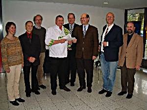 Bernd Nagel-Held und Mickel Biere (3 .u. 4. v. links) von Lippequalität freuten sich über 5000 verkaufte Ernte-Dank Brote gemeinsam mit (von links) der stellvertretenden Superintendentin Claudia Ostarek (Detmold), Superintendent Werner Weinholt (Bösingfeld), Kirchenrat Andreas-Christian Tübler, Landessuperintendent Dr. Martin Dutzmann, Superintendent Dirk Hauptmeier (Brake) und Superintendent Ernst-August Pohl (Lage).