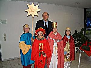 Detmold. Die Sternsinger waren zu Besuch im Landeskirchenamt und im Diakonischen Werk der Lippischen Landeskirche. Sie wurden von Landessuperintendent Dr. Martin Dutzmann begrüßt. Caspar, Melchior und Balthasar (Kilian Dzialdowski, Paula Keen und Esther Kampel) und ihre Sternträgerin (Lisa-Sophie Dzialdowski) schrieben das Segenszeichen C+M+B für „Christus mansionem benedicat“ (Christus segne dieses Haus) an den Türrahmen.