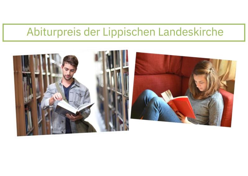 Die Lippische Landeskirche stiftet jährlich einen Preis für hervorragende Abiturleistungen im Fach Evangelische Religionslehre. Schüler*innen, die im Abitur in diesem Fach (Leistungskurs oder 3./4. Abiturfach) 14 oder 15 Punkte erzielt haben, sollen auf Vorschlag der Fachschaft Religion an ihrer Schule mit einem Buchpreis ausgezeichnet werden. Die Bücher werden den Schulen von der Lippischen Landeskirche zugesandt.