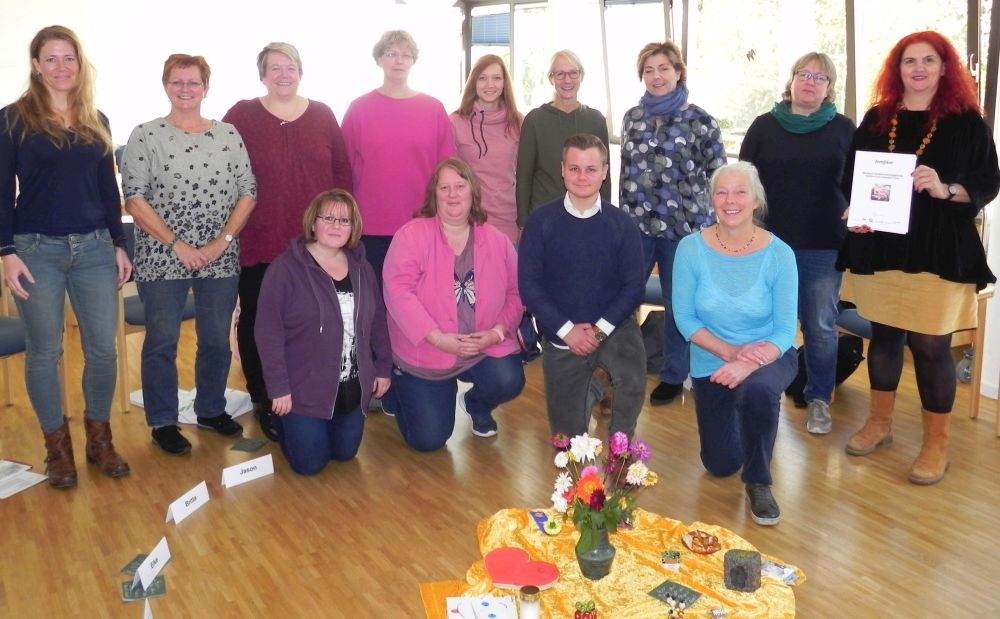 Zehn Teilnehmende haben jetzt einen Basiskurs „Familientrauerbegleitung“, ausgerichtet von der Lippischen Landeskirche und unter Anleitung der Referentin Mechthild Schroeter-Rupieper, Leiterin des Lavia-Instituts für Familientrauerbegleitung (Gelsenkirchen), absolviert. Die Fortbildung mit fünf Modulen richtete sich vor allem an Erzieherinnen und Erzieher, Lehrerinnen und Lehrer sowie an Menschen, die Familien in Trauer begleiten möchten. Sie qualifiziert und befähigt dazu, Familien in Trauersituationen professionell und praktisch in ihrem Trauerprozess zu begleiten und dabei insbesondere auf die Situation von Kindern und Jugendlichen einzugehen.