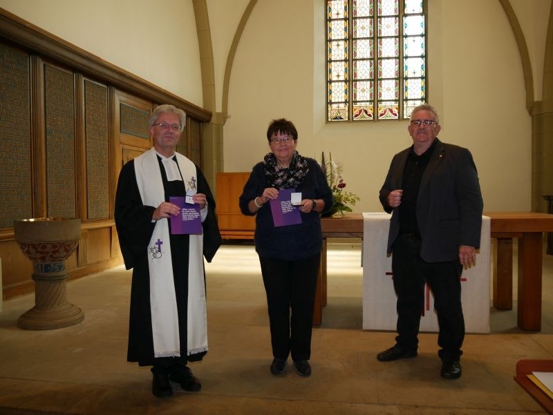 Inge Scharfenberg betreut seit mindestens 25 Jahren die Organisation rund um die Treffen der Gehörlosengemeinde – deckt die Tische und sorgt für Kaffee und Kuchen beim regelmäßig stattfindenden gemeinsamen Kaffeetrinken nach den Gottesdiensten. Seit 2004 berät sie als Gemeindesprecherin Pfarrer Sundermann in Gemeindeangelegenheiten, zum Beispiel der Verwendung der Kollekte und der Organisation besonderer Veranstaltungen. Pfarrer Sundermann würdigte im Gespräch mit Tobias Treseler insbesondere die ausgleichende Art von Inge Scharfenberg in der Gemeindearbeit.