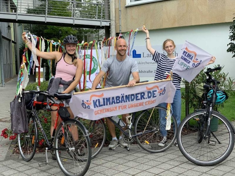 Als Mitglied der „Churches for Future“ wurde auch die Lippische Landeskirche im September mit zahlreichen Kirchengemeinden aktiv und sammelte hunderte Bänder, upgecycelt aus Stoffresten. Ein Team bestehend aus Mareike Rosenau und Naomi Brendler von „Fridays for Future Lemgo“ machten sich zusammen mit Johann Dralle (Lippische Landeskirche) auf den Weg, um die in Lippe gesammelten Bänder klimaneutral mit dem Fahrrad zur nächsten Übergabestelle in Bad Meinberg zu bringen. Dort trafen sie auf Unterstützer aus Düsseldorf und Paderborn, die auf der Westroute in Richtung Berlin unterwegs waren. Naomi Brendler schloss sich der Gruppe an und fuhr die lippischen Klimabänder über Hannover bis nach Berlin, wo diese die Politiker im Regierungsviertel vor den Bundestagswahlen auf die Dringlichkeit der Klimakrise aufmerksam machen sollten. So erreichten zehntausende Klimabänder aus ganz Deutschland Berlin, um auch im Rahmen des globalen Klimastreiks präsentiert zu werden.