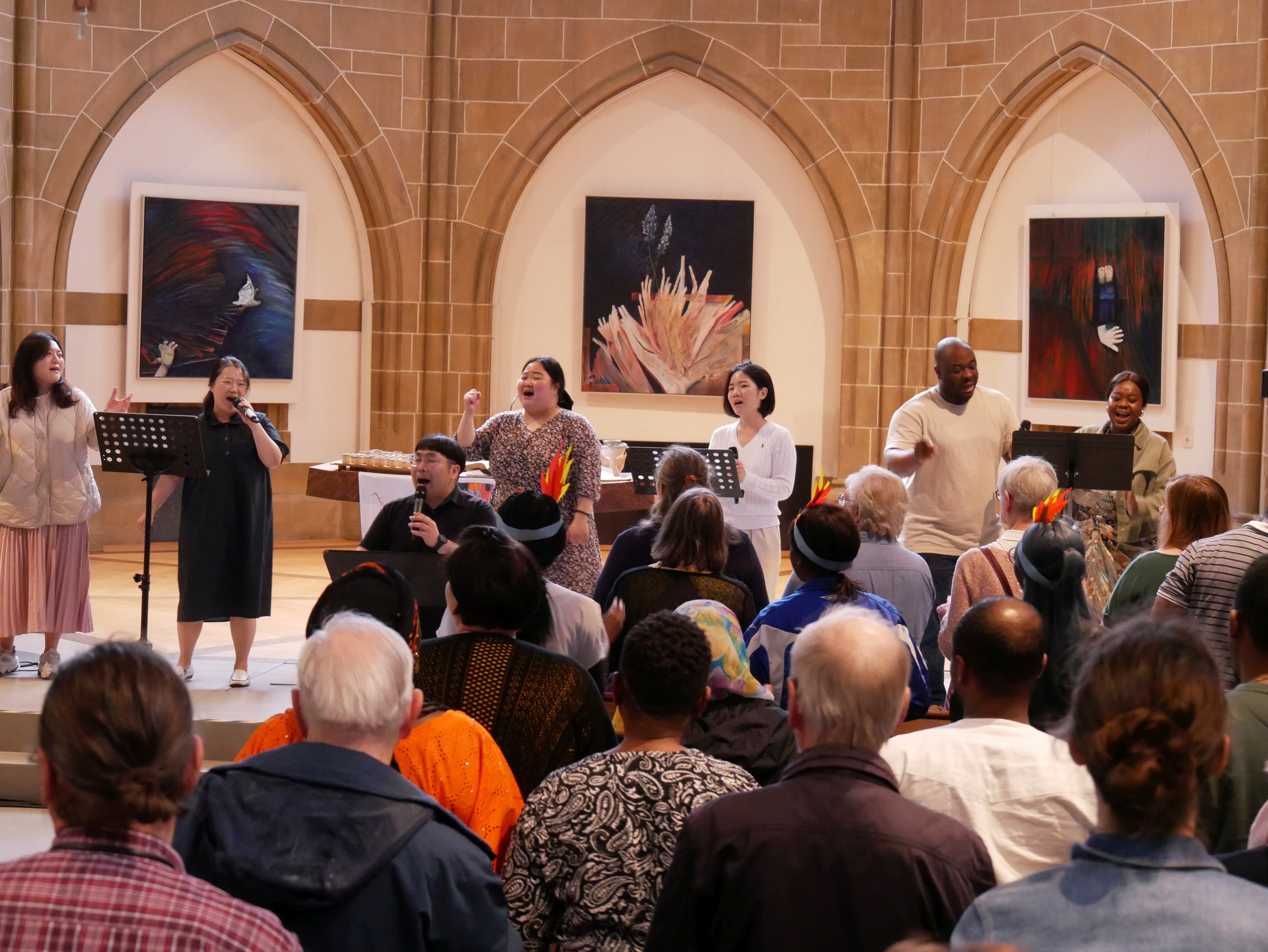 Gottesdienste in Deutsch, Englisch, Koreanisch, Farsi und ggf. anderen Sprachen finden jeweils am 3. Sonntag im Monat statt, derzeit in der Erlöserkirche am Markt in Detmold, bald wieder in der Christuskirche.