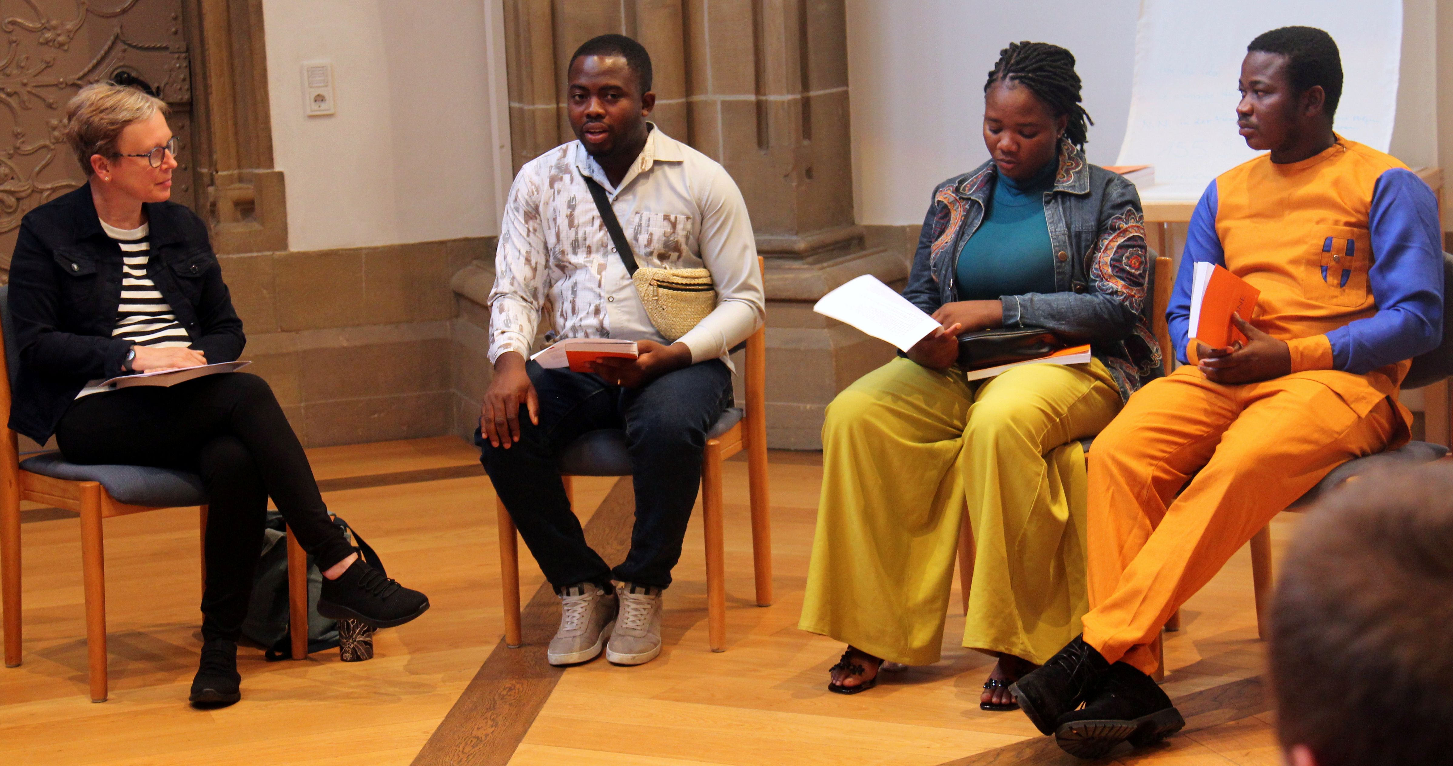 In kleiner, doch internationaler Runde saßen die Teilnehmenden im Chorraum zusammen. Pfarrerin Dörte Vollmer aus Lemgo führte stellvertretend für Studierendenpfarrer Maik Fleck durch die abendliche Feier. Salomon Adoono am Klavier gestaltete den Gottesdienst musikalisch.