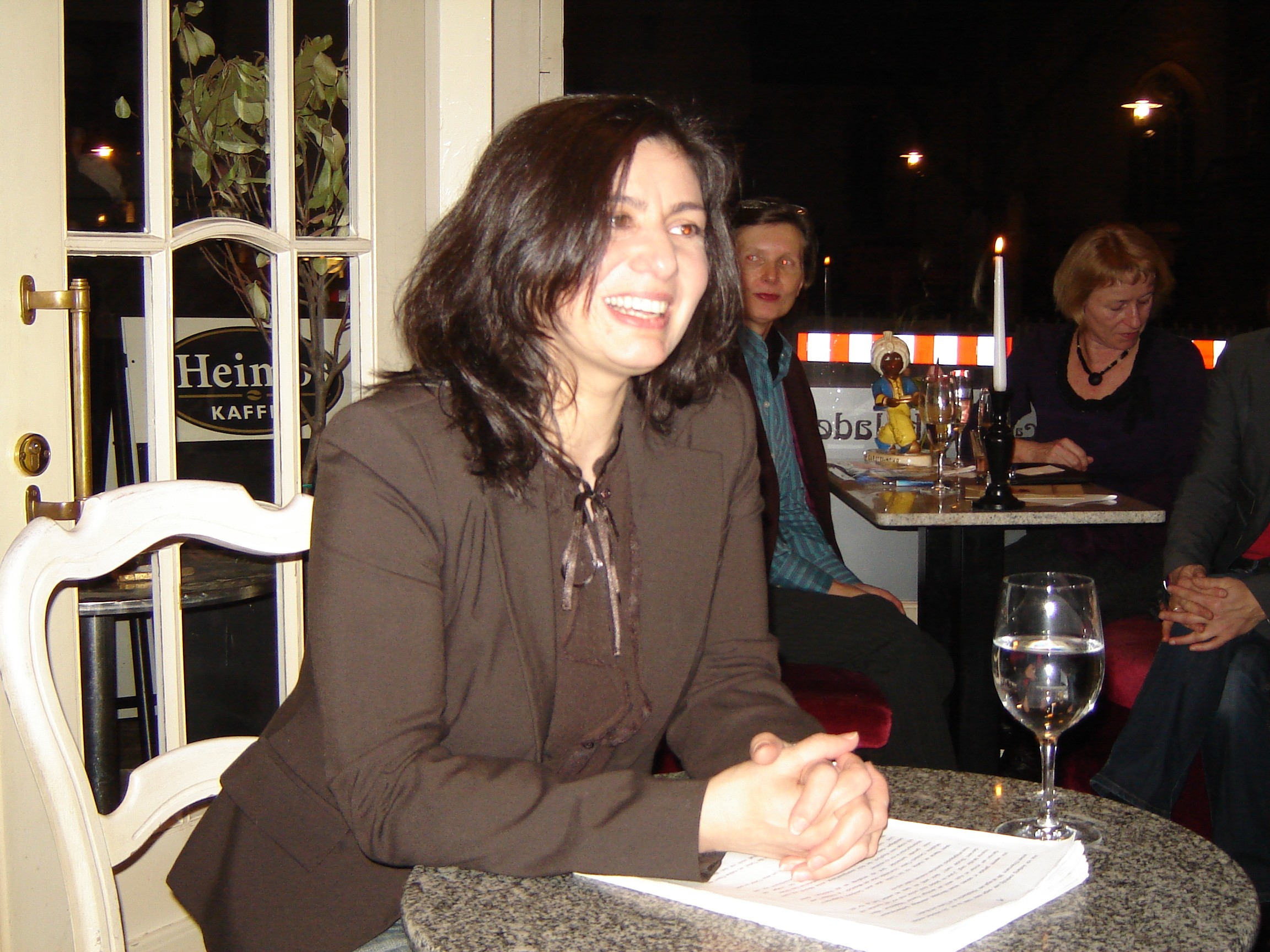 Hatice Akyün, die 1972 im Alter von drei Jahren mit ihrer Familie aus einem zentralanatolischen Dorf ins Ruhrgebiet nach Duisburg zog, beschreibt in ihren Büchern humorvoll ihr Leben zwischen zwei Kulturen, zwischen Berlin, Hamburg und der Türkei. Als „Gastarbeiterkind“ ist sie, wie viele andere ihrer Generation, auf der Suche nach der eigenen Identität – als Deutsche und als Türkin. Vor rund 50 Frauen im Café Schokolade schilderte Akyün auf lebendige Weise wie schwierig, aber auch bereichernd dieses Leben sein kann. Sie gewährte Einblicke in ihr turbulentes Familienleben zwischen Tradition und Moderne, zwischen türkischer Hochzeitssuppe und Vaters deutschem Mercedes. In diesem Leben gestaltete sich die Suche nach dem richtigen Partner langwierig, so Akyün augenzwinkernd: deutsche Männer – von den Türken immer Hans genannt – seien zu wenig leidenschaftlich, machten selten Komplimente und verlangten beim ersten Date nach getrennten Rechnungen. Inzwischen habe sie ihren Mann fürs Leben gefunden: einen Deutsch-Türken. Gemeinsam hätten sie eine kleine Tochter. Verheiratet seien sie jedoch nicht.