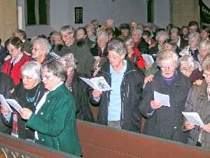 Zum Zeichen der Einheit bildeten die Besucherinnen des Gottesdienstes in den Kirchenbänken eine „Menschenschlange“.