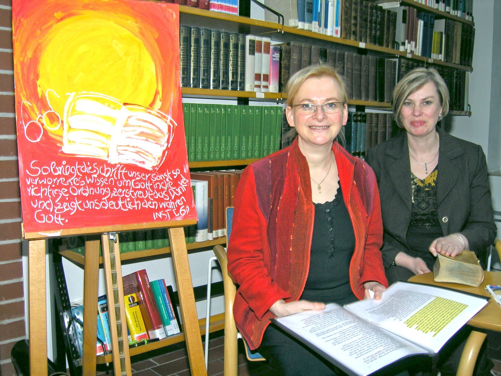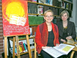 Calvin verstehe die Bibel als Brille, um Gott zu erkennen, erläuterte Pfarrerin Bettina Hanke-Postma (links) in ihrem Vortrag, zu dem Bibliotheksleiterin Ute Lanta (rechts) die Referentin eingeladen hatte.