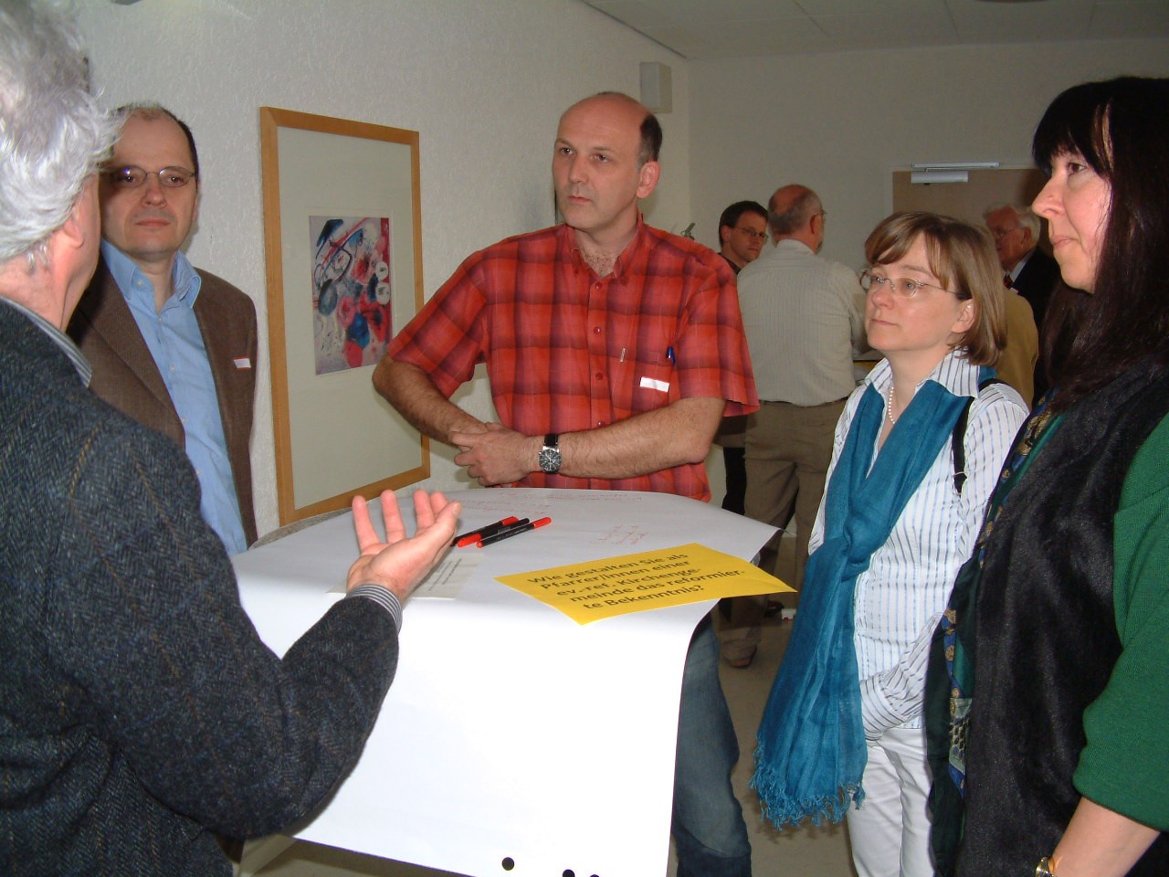 Dreßler-Kromminga lud die Pfarrerinnen und Pfarrer zum Gespräch ins „Welt-Café“ – eine Stunde lang wurde in verschiedenen Runden und wechselnden Besetzungen unter anderem die Frage diskutiert, wie Pfarrerinnen und Pfarrer in ihren Gemeinden das reformierte Bekenntnis gestalten. Sabine Dreßler-Kromminga: „Wie erkennen andere, dass meine Gemeinde eine reformierte ist?“ Diskutiert wurde unter anderem über die Gestaltung des Gottesdienstraumes, das Bilderverbot, die Gemeindeleitung, das politische Engagement in der reformierten Kirche oder auch Vielfalt und Freiheit im reformierten Profil.