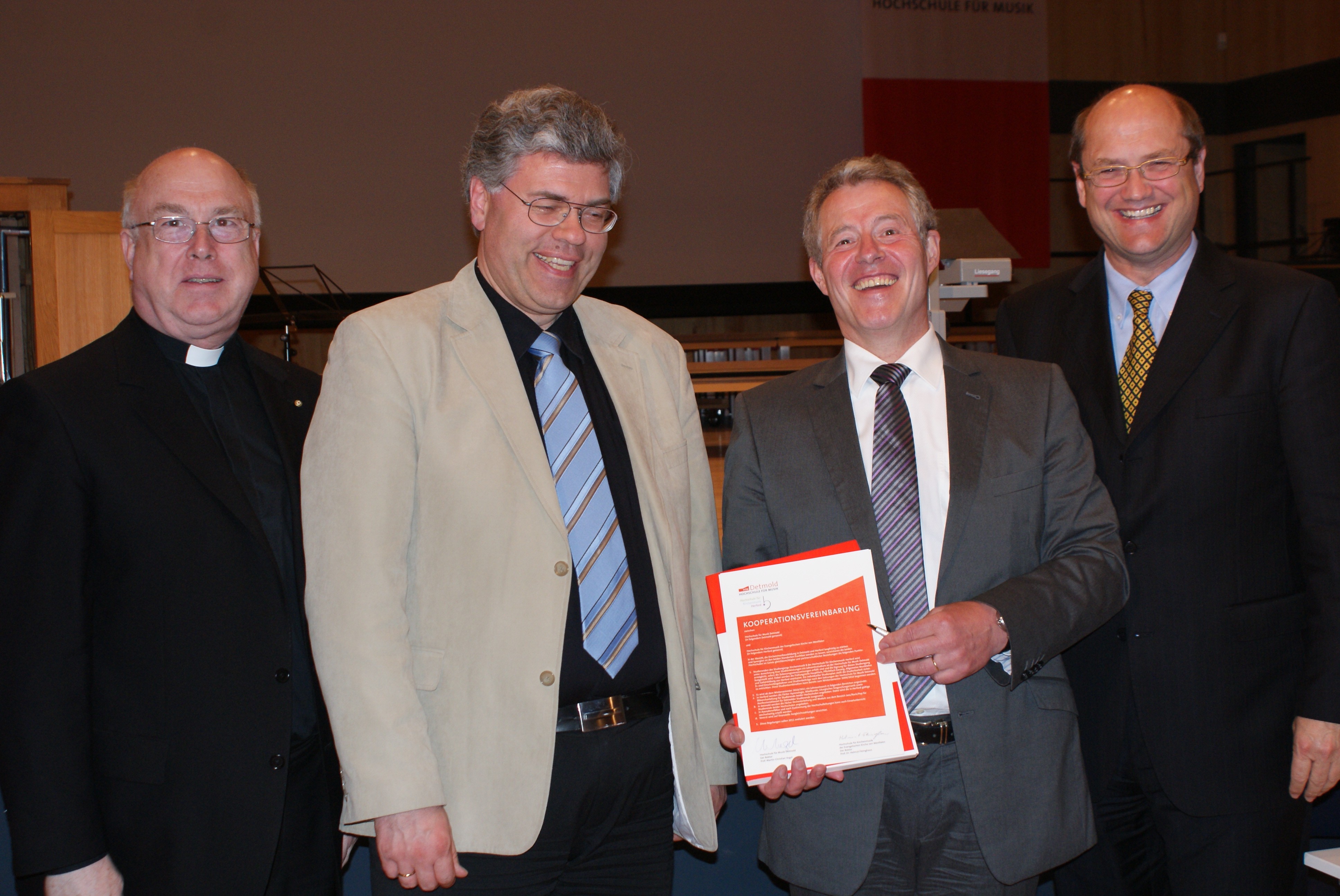 Prof. Vogel und Prof. Helmut Fleinghaus, Rektor der Hochschule für Kirchenmusik Herford, unterzeichneten anschließend einen Kooperationsvertrag. Beide Einrichtungen wollen zukünftig noch enger zusammenarbeiten. Studierende der Kirchenmusik sollen die Möglichkeit bekommen, auch Seminare der jeweils anderen Hochschule besuchen zu können.
