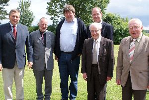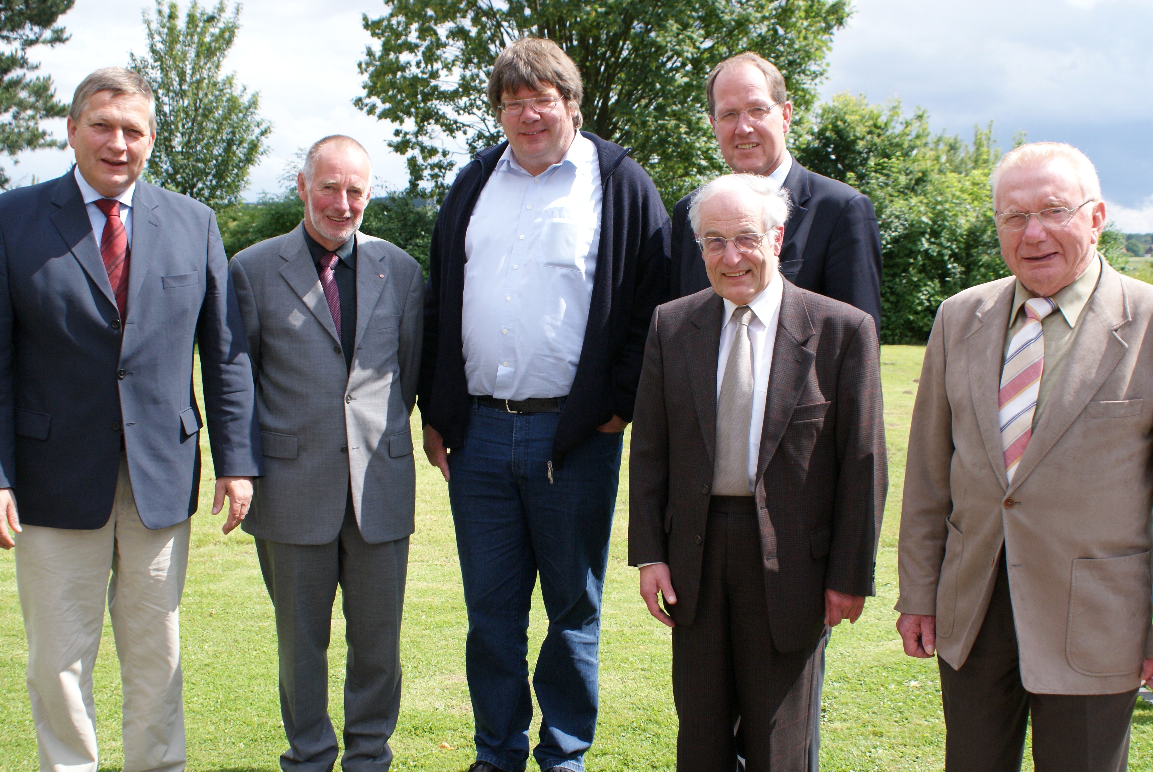 Reinhard Lemke, Adolf Meier zu Döldissen, Jobst Schmidtmeier, Andreas-Christian Tübler (hinten, von links) sowie Friedrich Wehmeier und Heinrich Stiewe (vorne, von links) auf dem Evangelischen Bauerntag.