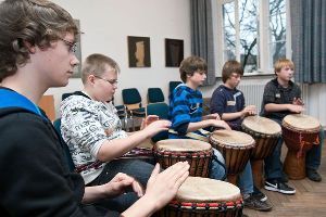 Im Trommel-Workshop bereiteten sich die Jugendlichen auf ihren Auftritt während der Abschlussfeier vor.