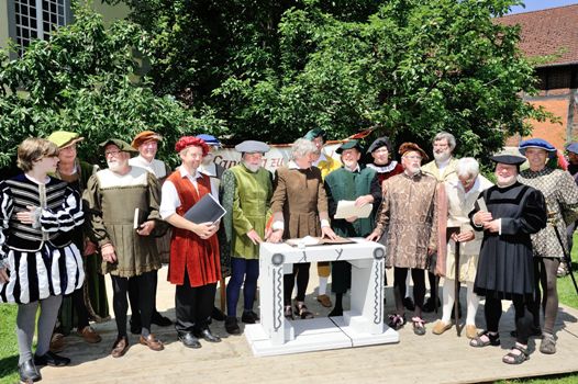 Viel Aufmerksamkeit fand auch das lebende Gemälde, in dem unter der Regie von Frank Huismann die Landtagsszene von 1538 von Akteuren in historischen Kostümen nachgestellt wurde. Eine Szene, die im Vorraum des Sitzungssaals des 1912 erbauten Landtagsgebäudes von Bruno Wittenstein als Gemälde dargestellt worden ist.