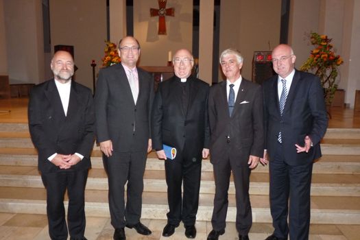 Jahresempfang in der Kirche Heilig Kreuz mit: Dechant Klaus Fussy, Landessuperintendent Dr. Martin Dutzmann, Erzbischof Hans-Josef Becker, Oberkirchenrat Michael Wegner, Professor Dr. Wolfgang Thönissen. (v.l.)