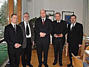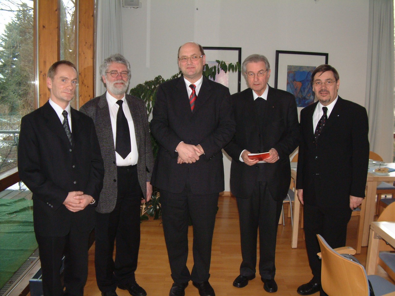 Trafen sich auf dem Gemeindenachmittag des Evangelischen Bundes in Detmold: Pfr. Dr. Werner Weinholt, Vorstandsmitglied im EB Landesverband Westfalen und Lippe; Pfr. Dr. Walter Fleischmann-Bisten, Generalsekretär des EB; Landessuperintendent Dr. Martin Dutzmann; Dechant Karl-Heinrich Brinkmann; Pfr. Norbert Filthaus, Vorsitzender im Vorstand des EB Landesverbandes Westfalen und Lippe (von links).