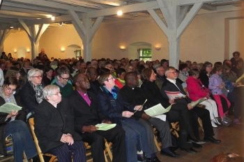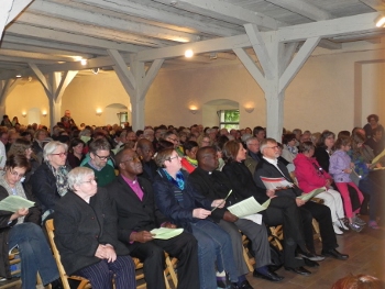 Etwa 900 Menschen nahmen teil. Wegen des großen Andrangs wurde der Gottesdienst, der in der Schlossscheune gefeiert wurde, nach draußen übertragen.