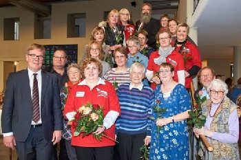 Die Jubiläumsfeier in Lemgo war „eine Wertschätzung und ein Dankeschön an die Mitarbeitenden“, erläuterten Stephanie Springer und Susanne Tono. Stephanie Springer, die dem Vorstand des Lippischen Landesverbandes für Kindergottesdienst seit 25 Jahren angehört, ist seit 2009 ehrenamtliche Verbandsvorsitzende. Pfarrerin Susanne Tono ist landeskirchliche Beauftragte für Kindergottesdienst. Beide ehrten Mitarbeitende, die 20 Jahre und länger aktiv sind. „Dienstälteste“ in dieser Hinsicht war Ortrud Krause aus Barntrup, die seit 59 Jahren in der Kindergottesdienst-Arbeit tätig ist. Alle Mitarbeitenden, so Stephanie Springer und Susanne Tono, würden in ihren Gemeinden die Gottesdienste mit viel Engagement gestalten und so Gottes Wort an die Kinder weitergeben. Dies sei umso verdienstvoller, je weniger es in den Familien geschehe.