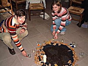 Pfarrerin Dorothea Brand vermittelte in ihrem Workshop, wie man sich der Geschichte vom „Werden und Vergehen“ mit einem Bodenbild, - mit Erde, Herbstlaub und Kerzen, nähern kann. Kinder brauchen die Möglichkeit, über Sterben und Tod reden zu können, darüber war sich die Gruppe einig. Pfarrerin Brand: „Abschied tut weh, dass man das auch sagen darf, ist wichtig.“ Christine Hartig hat das Bodenbild mitgestaltet: „Auf diese bildliche Weise kann man den Kindern mehr vermitteln, als nur darüber zu sprechen.“ Pastorin Sabine Hartung kann sich vielfältige Einsatzmöglichkeiten für solch ein Bodenbild vorstellen, denn „dadurch ist es möglich, die Kinder noch mehr zu beteiligen, sie noch mehr zu konzentrieren. Und es ist ein gemeinsames Bild, jeder macht mit beim Aufbau und Abbau.“ Weitere Workshops beschäftigten sich mit Märchen zum Thema und mit kreativer Arbeit: Kindergottesdienst-Mitarbeitende ließen den Garten Eden aus Erde und Ton entstehen. An einem Büchertisch konnten sich die Teilnehmenden über aktuelle Literatur informieren. Ein gemeinsamer Abendmahlsgottesdienst mit einem Bodenbild zur Schöpfungsgeschichte rundete den Fortbildungstag ab.