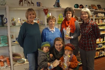 Losglück: Andrea Heumann (Zweite von rechts) und Sophie Rabbow (vorne, mit ihren Kindern) gehören zu den Gewinnern. Mit ihnen freuen sich Marianne Thurner, Irmgard Rottmann und Susanne Dilschmann (von links) aus der Arbeitsgemeinschaft des Eine-Welt-Ladens Alavanyo.