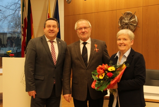 Tolles Engagement: Landrat Dr. Axel Lehmann freut sich mit Dieter Lorenz und dessen Ehefrau Traute über die Auszeichnung.