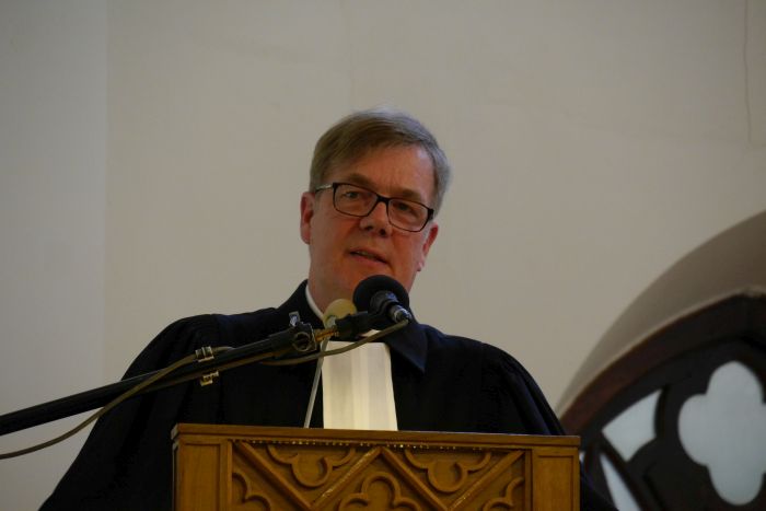 Landessuperintendent Dietmar Arends predigt im Gottesdienst in Warschau