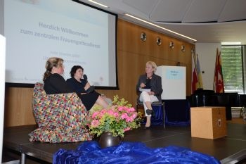 In der Lippischen Landeskirche, in der Frauen lange Zeit auf diakonische Aufgaben festgelegt waren und das passive Frauenwahlrecht für die Kirchenvorstände bis in die 50er Jahre hinein hatte auf sich warten lassen, sieht es derzeit etwas besser aus: in den Kirchenvorständen sind etwas mehr Frauen als Männer, in der Synode 22 von 56 Synodalen Frauen. Eine davon ist Friederike Miketic, die auf dem bunten Sofa im Interview mit Monika Korbach berichtete, dass die Stimmung in der Synode sehr fair sei. Sie und Ellen Stock, SPD-Kreisvorsitzende und Landtagsabgeordnete, waren sich aber einig, dass Frauen mutiger werden sollten und sich öfter einmischen und mitmachen in Führungspositionen.