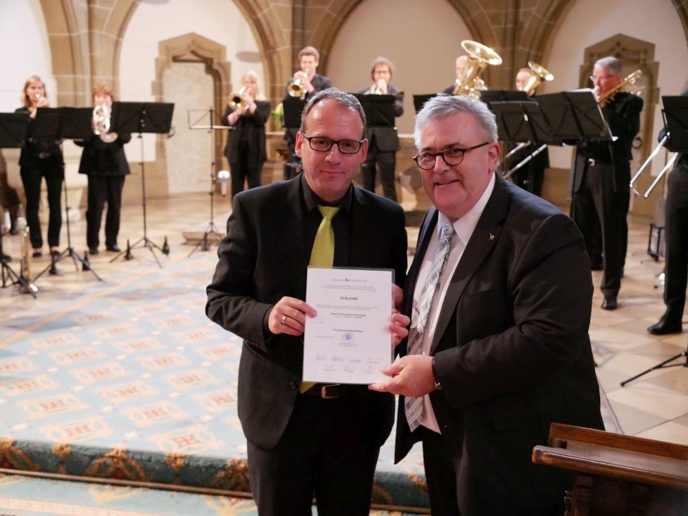 Kirchenrat Tobias Treseler überreicht die Ernennung im Rahmen eines Bläserkonzerts in der Christuskirche
