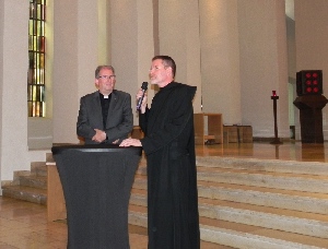Kreis Lippe/Detmold. Wie gibt es eine zeitgemäße, nicht oberflächliche Sprache für Gott? Mit „Kirche und Marketing“ befasste sich der Jahresempfang des Erzbistums Paderborn und der Lippischen Landeskirche in der katholischen Kirche Heilig Kreuz in Detmold. Gäste aus Politik, Gesellschaft und Kirche hörten mit Interesse den Dialog, den Dechant Norbert Nacke (Dekanat Bielefeld-Lippe) und Pater Abraham Fischer (Benediktinerabtei Königsmünster in Meschede) zum Thema hielten. Ihr Gespräch vermittelte auf unterhaltsame Weise, wie Kirche heute Menschen erreichen kann: „Das geht in unserer Gesellschaft nur im Dialog, nicht im gläubigen Rezipieren“, zeigte sich Pater Abraham überzeugt.