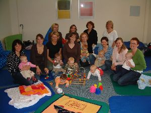 Die ersten Gruppen „Gemeinsam durch das erste Lebensjahr“ konnten Ingrid Moczarski, Heike Schneider, Birgit Piltman und Katharina Hermeier (Bild-1, hintere Reihe von links) von der Ev. Familienbildung bereits am Donnerstag (06.09.) in den neuen Räumen begrüßen.