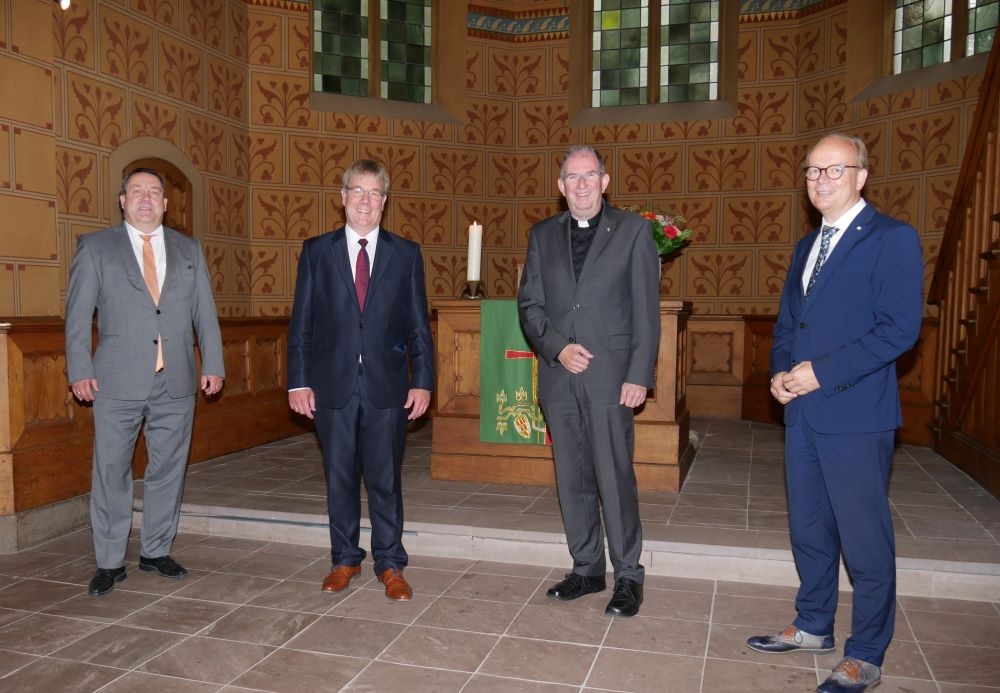Die Gäste erhielten in einem von Bildungsreferentin Monika Korbach moderierten Talk Eindrücke aus verschiedenen Arbeitsbereichen im Bereich der Lippischen Landeskirche während der Pandemie, die für alle mit Einschränkungen, aber auch mit neuen Erkenntnissen verbunden waren. So musste der komplette Alltag in der Stiftung Eben-Ezer zügig zu Beginn der Epidemie umgestellt werden, Werkstätten und Gemeinschaftseinrichtungen geschlossen und die Menschen „rund um die Uhr in ihren Wohnheimen“ betreut werden, berichtete Dr. Bartolt Haase, Theologischer Vorstand der Stiftung Eben-Ezer. Kirchengemeinden änderten ihre Gottesdienstangebote von Präsenz auf digitale Formate und hielten die Kirchen für Besucher offen, erläuterte Superintendent Andreas Gronemeier, Pfarrer der ev.-ref. Kirchengemeinde Schötmar. Von den besonderen Herausforderungen von Kirchen des globalen Südens, die sich über Kollekten aus Gottesdiensten, die nicht mehr stattfinden konnten, finanzieren, wusste Dieter Bökemeier, Landespfarrer für Diakonie, Ökumene und Migration zu berichten. Pfarrerin Susanne Eerenstein, Leiterin des Evangelischen Beratungszentrum, schilderte die Erweiterung des Angebots der Beratung, die bisher ausschließlich in der persönlichen Begegnung stattfand, um Telefon- und Videoberatung. Dies wolle man auch so beibehalten. Das Zusammenkommen per Videokonferenz mit den Partnern in der weltweiten Ökumene bewertete auch Dieter Bökemeier als hilfreich. „Zur Verfügung stehen auch unter schwierigen Bedingungen“ sei ein Kennzeichen von Kirche, meinte Susanne Eerenstein. Deutlich wurde, dass in all dem Schlimmen der Pandemie diese Zeit auch eine des „gemeinsamen Lernens und des Aneignens neuer Fähigkeiten ist“, wie Dechant Norbert Nacke die mit viel Applaus bedachten Eindrücke und Informationen aus kirchlichen Arbeitsfeldern zusammenfasste.